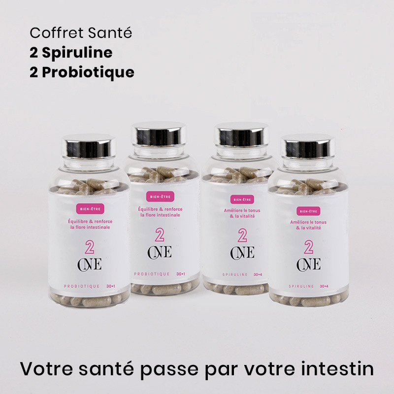 Probiotique 2 One : Moins de fatigue physique ou émotionnelle. Un écosystème intestinal équilibré, une meilleure assimilation de votre alimentation, donc plus d’énergie, une meilleure immunité. Sachez également que notre intestin est considéré comme notre deuxième cerveau ! Pour conclure un intestin équilibré permet une meilleure stimulation des neurotransmetteurs, une meilleure peau...